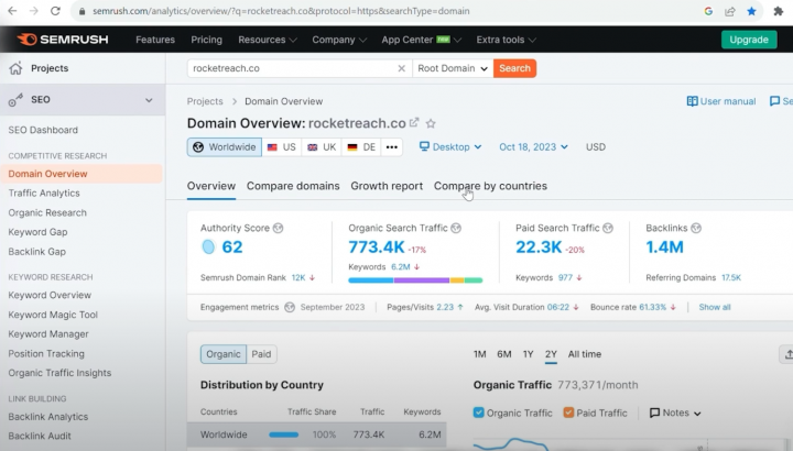 I took one of my competitors Rocket Reach and put them into SEMRush,