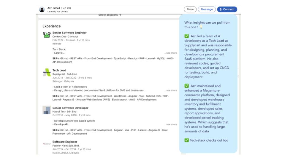 - Has a continuous learning mindset – we value a mindset geared towards constant learning, evident in candidates who engaged in the community, pursued passion projects, or demonstrated consistent career growth.