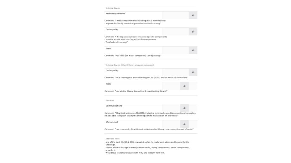 Our technical evaluation involved sending a take-home coding challenge that allow candidates to demonstrate their technical skills at their own pace.