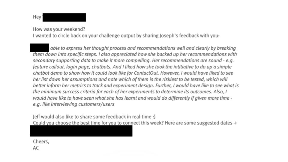 Much like the rest of our teams, hiring PMs was a relatively new experience for us, so it meant having plenty of iterations to the process. The game-changer for us was the “coaching piece” in STEP 3. This approach helped keep candidates engaged; it presented a learning element since they got 15-minute 1:1s with leaders to capture unique perspectives and helped candidates create more meaningful outcomes.