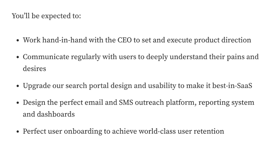 We had some fairly unique challenges in ContactOut. In a startup, the priority for this quarter may not necessarily be the priority for the next one. When projects pivot, they pivot fast – so the JD reflected much of what the foreseeable needs were.