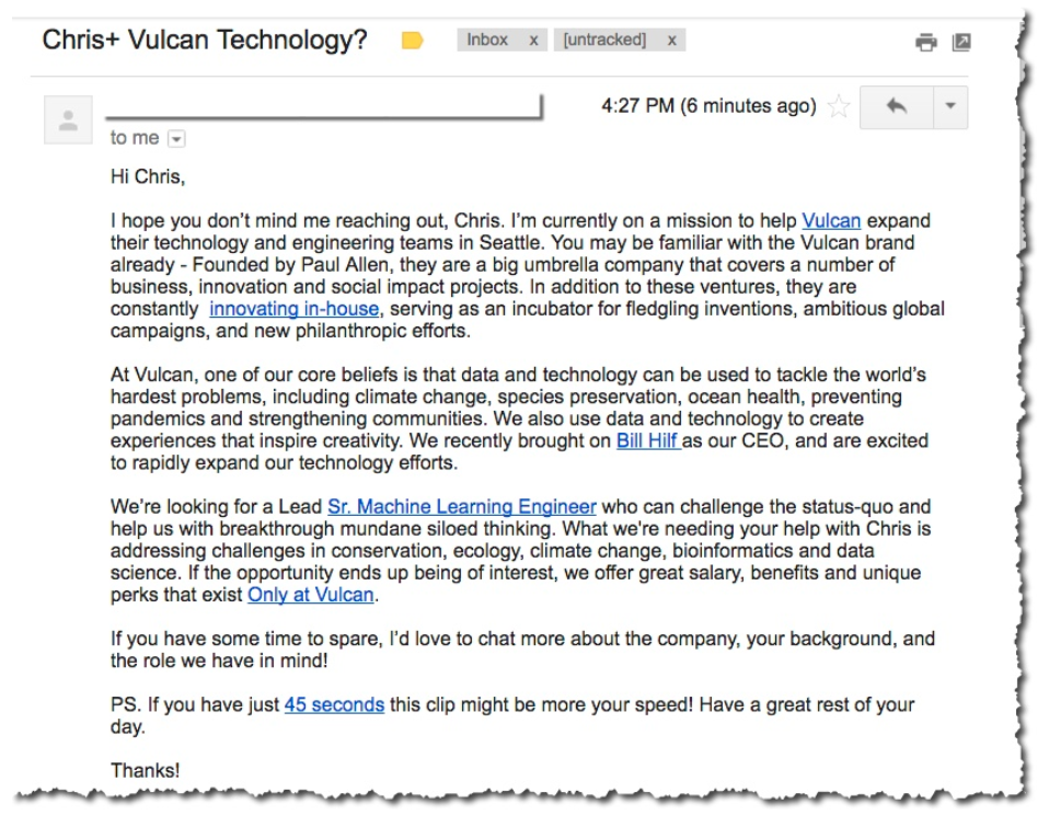 Setting aside that element of delight, we recognize that it takes hours of research to make a personalized email, so let’s approach this from a bird’s eye POV. What are candidates really looking for when they read your email?