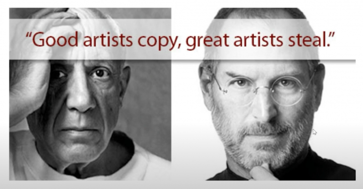 Steve jobs once said that good artists copy and great artists steal – a quote that he stole himself from Picasso.