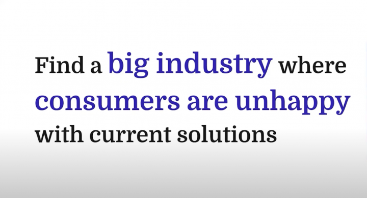 You want to find a big industry where consumers are unhappy with current solutions, because that’s where there’s a gap in the market to provide a solution that’s significantly better.