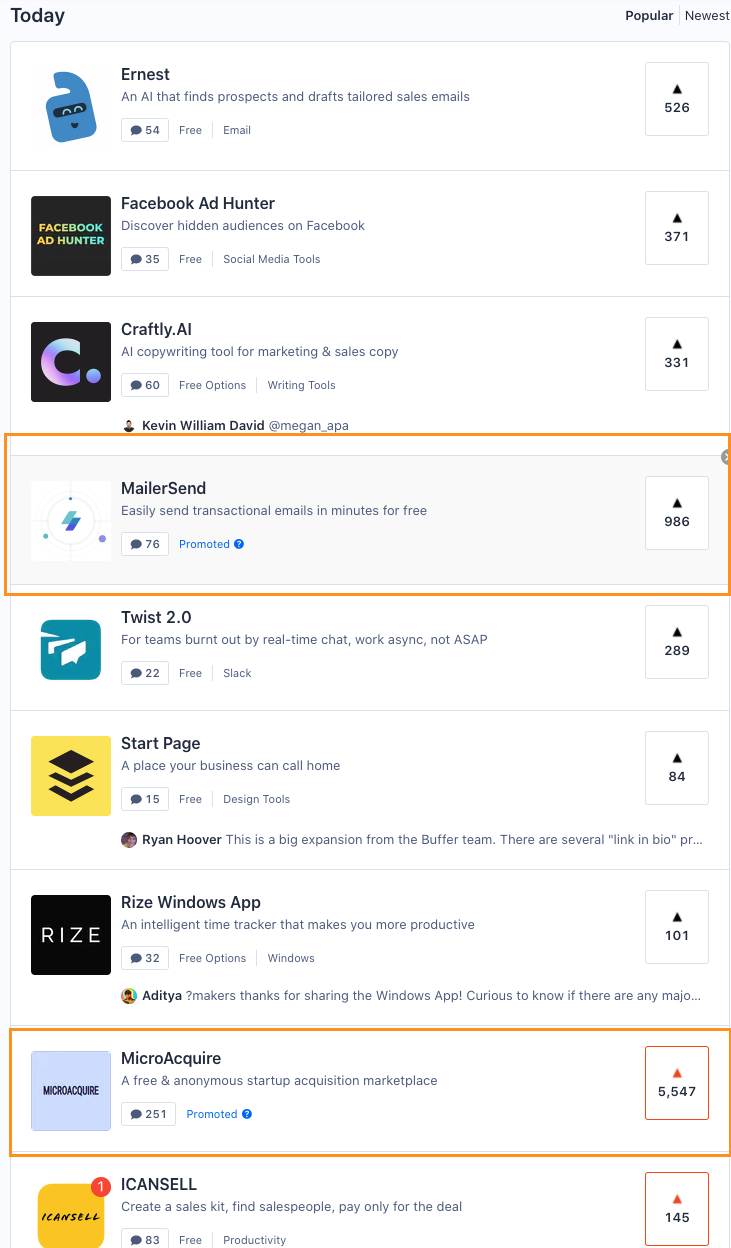 - In the list of popular products from the day before. This works well for promoting your product as this is our most popular section in the newsletter. Here is an example with Stripe as the sponsor;