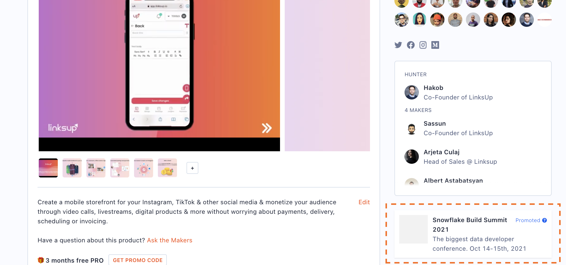 - Product & Topic Pages: visibility for users arriving via browser searches, SEO and Makers sharing their launches